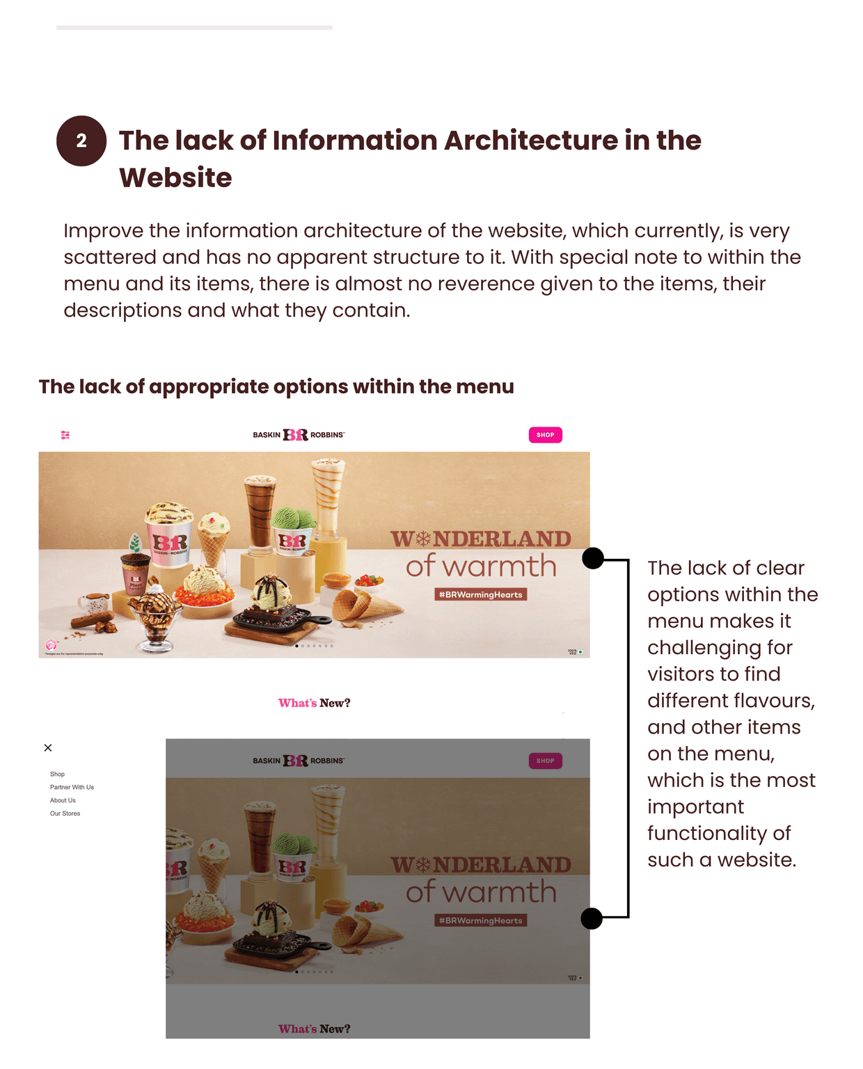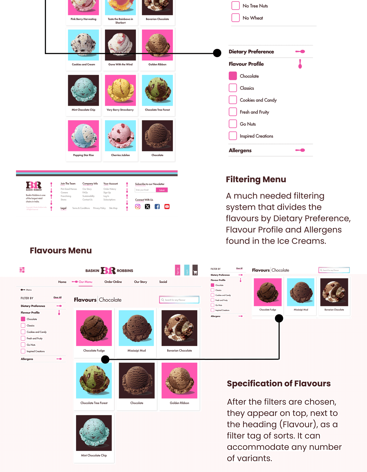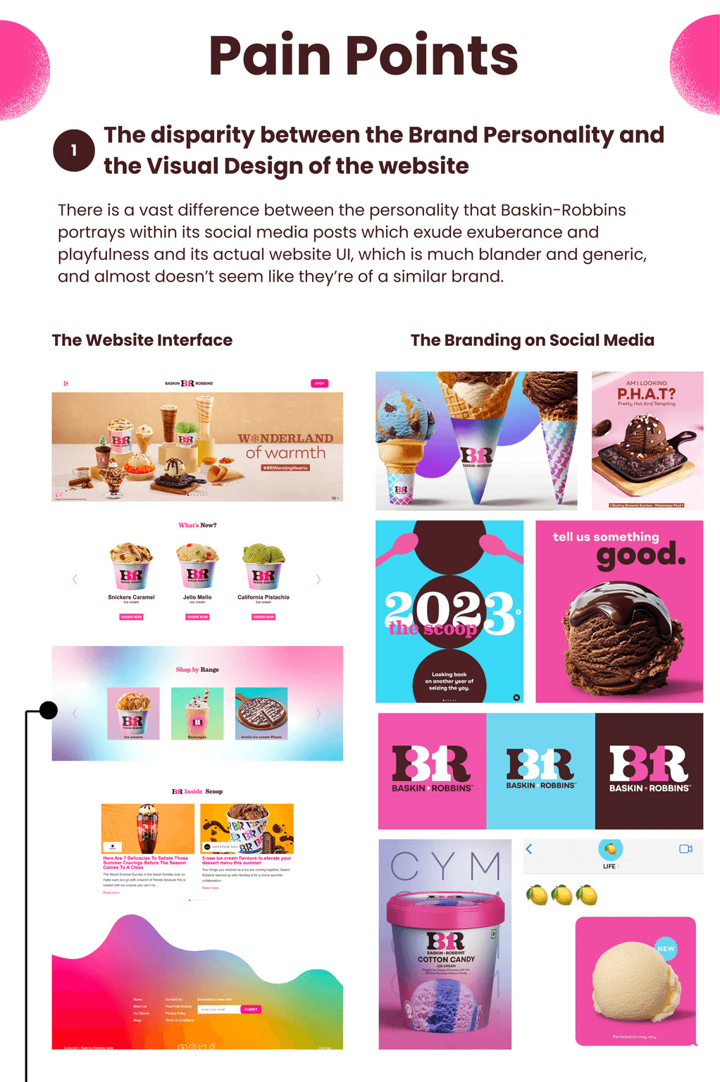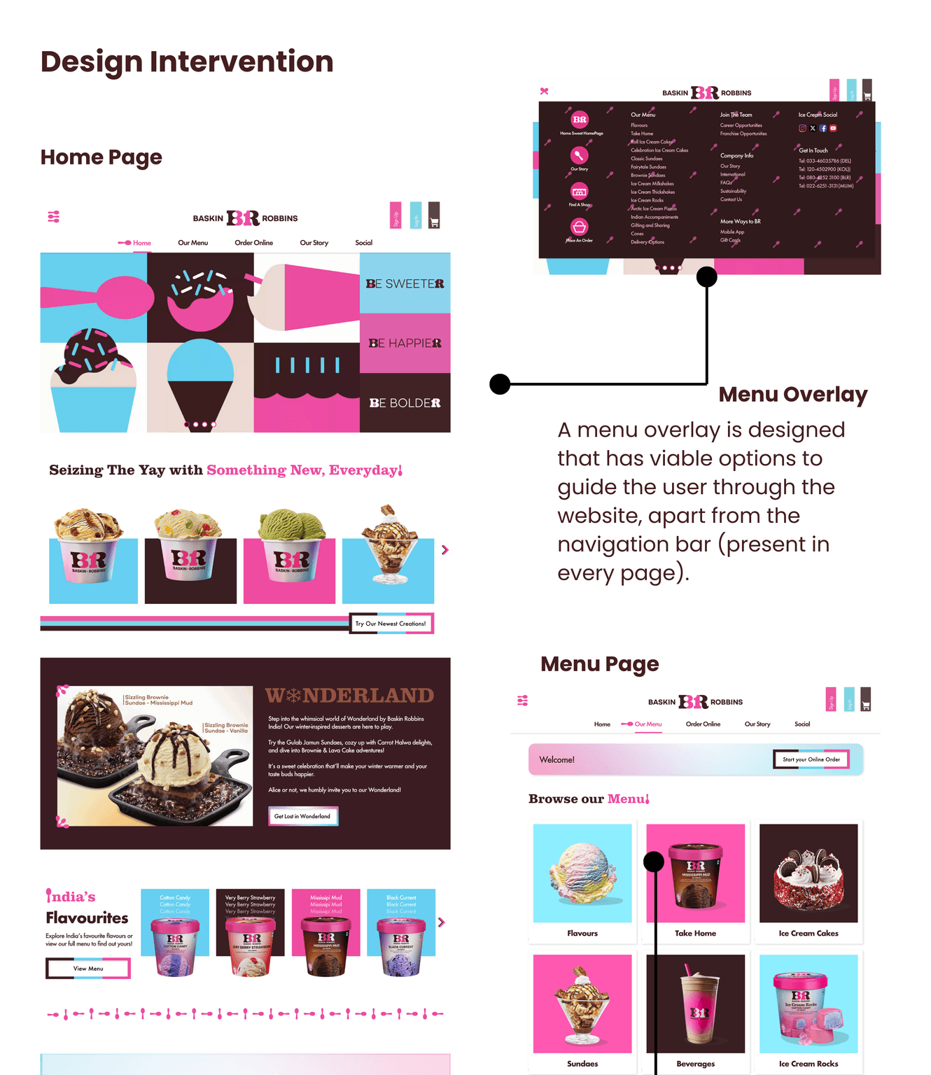 After evaluating the Baskin-Robbins India website, I found it lacked the brand’s vibrant, fun personality, and its information architecture was ineffective. I redesigned the site with bold visuals, interactive elements, and a more intuitive structure to create a seamless, engaging experience that reflects the joy of visiting a Baskin-Robbins store.